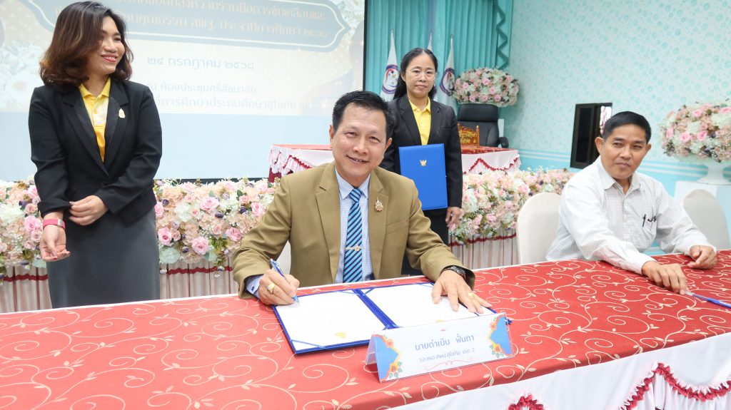 วันที่ 24 ก.ค.2568 สพป.สุโขทัย เขต 2 โดยกลุ่มนิเทศติดตามและประเมินผลการจัดการศึกษา ดำเนินการจัดทำบันทึกข้อตกลงความร่วมมือการขับเคลื่อนและพัฒนาโรงเรียนคุณธรรม สพฐ. ประจำปีการศึกษา 2568 ระหว่าง สำนักงานเขตพื้นที่การศึกษาประถมศึกษาสุโขทัย เขต 2 กับ สถานศึกษาในสังกัดที่สมัครยกระดับคุณภาพการศึกษา 3 ดาว จำนวน 19 โรงเรียน ในกิจกรรมแลกเปลี่ยนเรียนรู้โรงเรียนคุณธรรม สพฐ. ระดับ 3 ดาว เพื่อปลูกฝังและพัฒนาคุณธรรม “สร้างคนดีให้กับบ้านเมือง” ณ ห้องประชุมศรีสัชนาลัย สพป.สุโขทัย เขต 2….(มณีวรรณ…ภาพ/ข่าว)