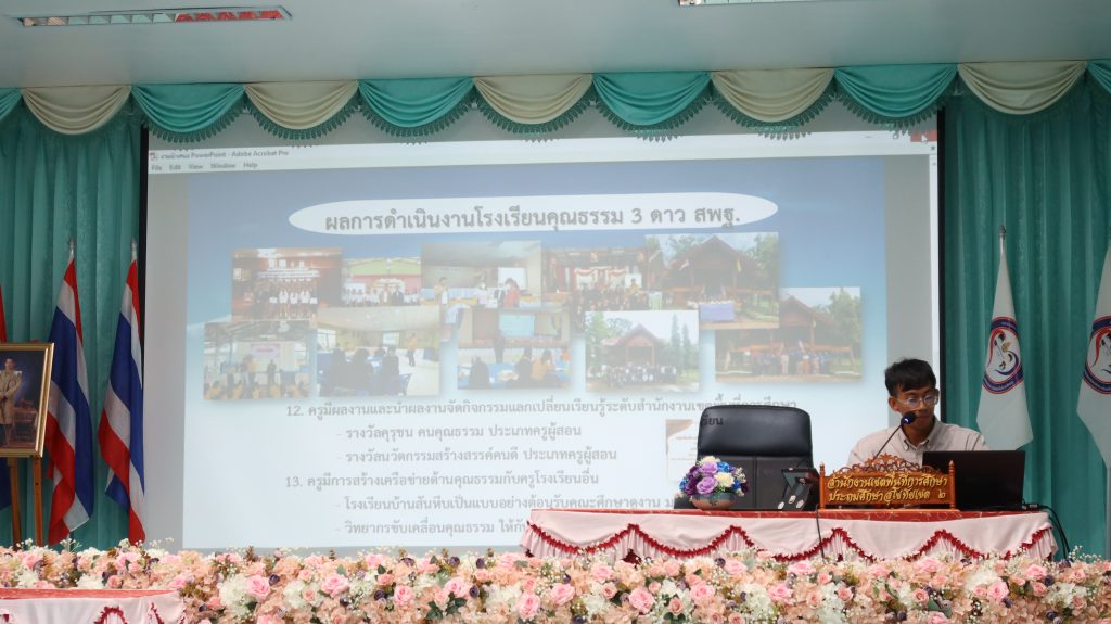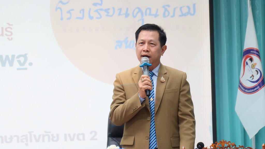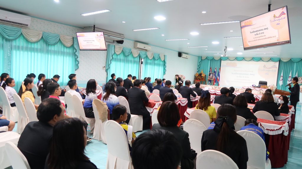 วันที่ 24 ก.ค.2568 กลุ่มนิเทศติดตามและประเมินผลการจัดการศึกษา สพป.สุโขทัย เขต 2 ดำเนินกิจกรรมโรงเรียนดีต้องมีที่ยืน “กิจกรรมแลกเปลี่ยนเรียนรู้โรงเรียนคุณธรรม สพฐ. ตามโครงการส่งเสริมคุณธรรม จริยธรรม คุณลักษณะอันพึงประสงค์ และค่านิยมของชาติ ตามแนวทางโรงเรียนคุณธรรม สพฐ. “กิจกรรมร่วมแลกเปลี่ยนเรียนรู้” ปีการศึกษา 2568 เป็นการใช้ผลการประเมินโครงการโรงเรียนคุณธรรม สพฐ. มาใช้เป็นผลการประเมินคุณลักษณะอันพึงประสงค์ตามหลักสูตรแกนกลาง และกิจกรรมแนวทางการดำเนินคุณธรรม สพฐ. ระดับ 4 ดาว โดยได้รับเกียรติจาก นายดำเนิน ฝั้นถา รอง ผอ.สพป.สุโขทัย เขต 2 รักษาราชการแทน ผอ.สพป.สุโขทัย เขต 2 เป็นประธานในพิธีเปิดกิจกรรม โดยมี นายอุดม เด่นเฉลิมชัยกุล รอง ผอ.สพป.สุโขทัย เขต 2 ร่วมเป็นเกียรติ และ นายสุภัค พวงขจร รอง ผอ.สพป.สุโขทัย เขต 2 ร่วมให้กำลังใจผู้เข้าร่วมกิจกรรมดังกล่าว ณ ห้องประชุมศรีสัชนาลัย สพป.สุโขทัย เขต 2….(มณีวรรณ…ภาพ/ข่าว)