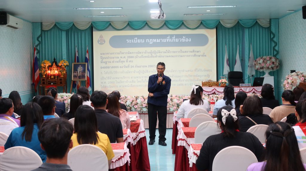 วันที่ 13 ก.ย.2568 สพป.สุโขทัย เขต 2 โดยกลุ่มบริหารงานบุคคล ดำเนินการอบรมลูกจ้างชั่วคราวตำแหน่งธุรการโรงเรียน ตามโครงการพัฒนาศักยภาพบุคลากรทางการศึกษาและเสริมสร้างความรู้ วินัย คุณธรรม จริยธรรม