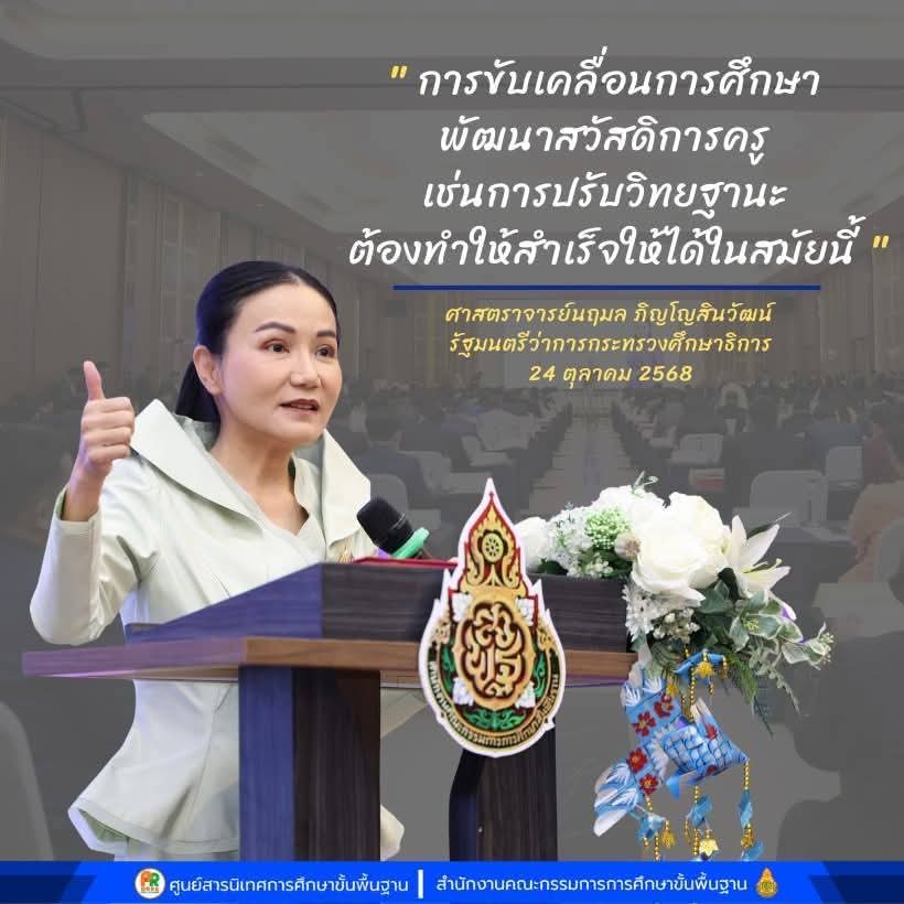 วันที่ 24 ต.ค.2568 ดร.เดชา ลุนาวงค์ ผอ.สพป.สุโขทัย เขต 2 ร่วมประชุมสัมมนาผู้อำนวยการสำนักงานเขตพื้นที่การศึกษาทั่วประเทศ ครั้งที่ 2/2568 ของสำนักงานคณะกรรมการการศึกษาขั้นพื้นฐาน (สพฐ.) เพื่อมอบนโยบายและแนวทางในการขับเคลื่อนการศึกษาโดยให้ความสำคัญกับการนำพระราชดำรัสของพระบาทสมเด็จพระเจ้าอยู่หัว รัชกาลที่ 10 เกี่ยวกับ “การคิดวิเคราะห์” ในวิชาประวัติศาสตร์ เพื่อส่งเสริมให้เด็กและเยาวชนเป็นพลเมืองที่มีวิจารณญาณ โดยได้รับเกียรติจาก ศ.ดร.นฤมล ภิญโญสินวัฒน์ รัฐมนตรีว่าการกระทรวงศึกษาธิการ เป็นประธานในพิธีเปิดการประชุม ณ โรงแรมเดอะ คาวาลิ คาซ่า รีสอร์ท จังหวัดพระนครศรีอยุธยา…(ศนท.สพฐ….ภาพ/มณีวรรณ…ข่าว)