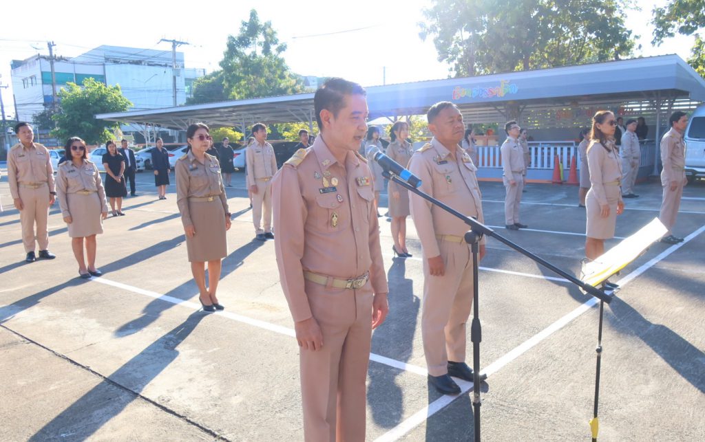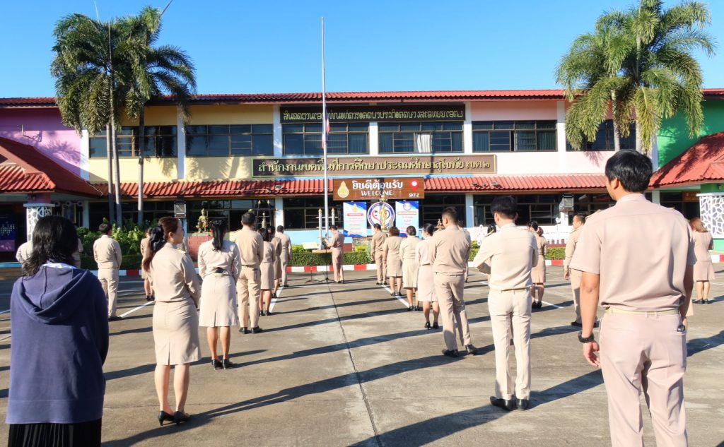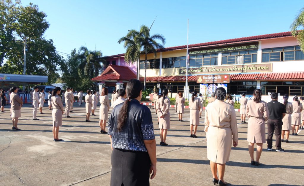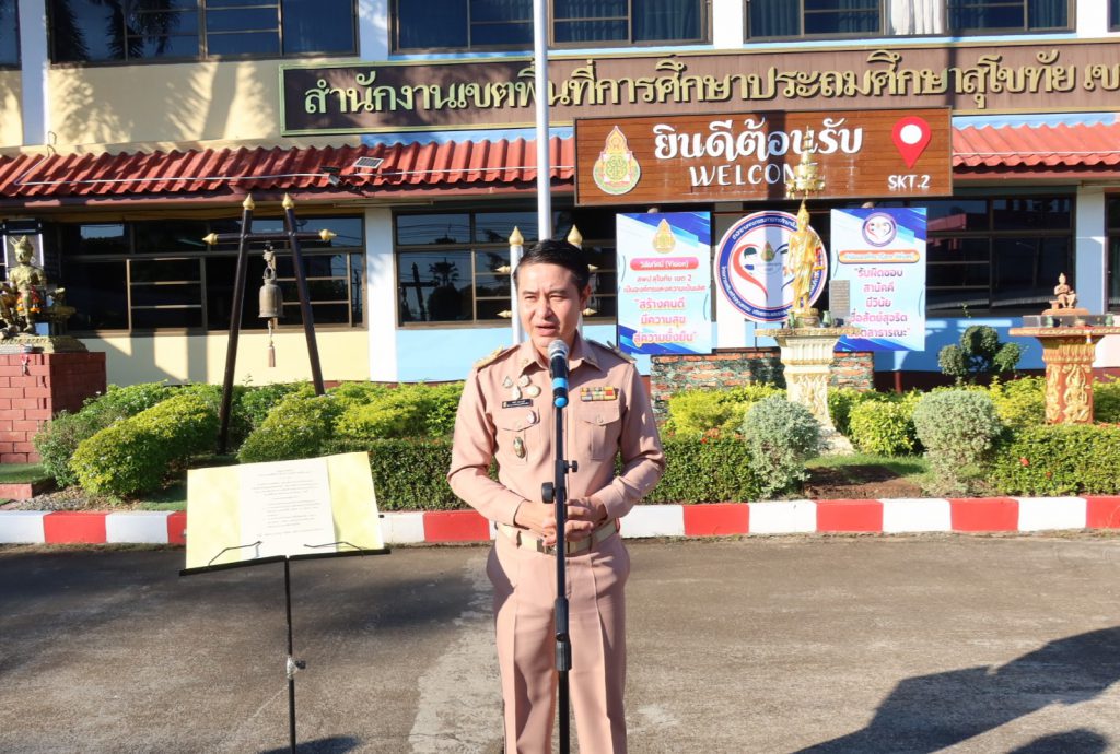 วันที่ 1 ธันวาคม 2568 ดร.เดชา ลุนาวงค์ ผอ.สพป.สุโขทัย เขต 2 นำคณะ รอง ผอ.สพป.สุโขทัย เขต 2 ,ผู้อำนวยการกลุ่ม พร้อมด้วยเจ้าหน้าที่และบุคลากรในสังกัดเข้าแถวเคารพธงชาติ และกิจกรรมหน้าเสาธงชาติ ประจำเดือนธันวาคม 2568 ตามโครงการเขตสุจริต…(มณีวรรณ…ภาพ/ข่าว)