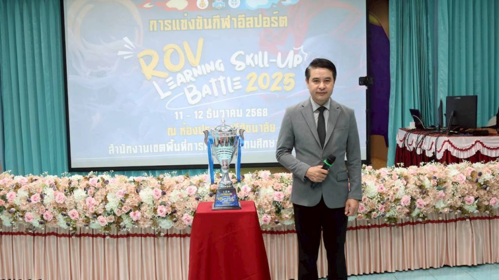 วันที่ 11 ธ.ค.2568 สพป.สุโขทัย เขต 2 โดยกลุ่มนิเทศติดตามและประเมินผลการจัดการศึกษา ดำเนินการจัดการแข่งขันกีฬาอีสปอร์ต ROV LEARNING SKILL UP BATTLE 2025″ (อาร์โอวี เลิร์นนิ่ง สกิลอัพ แบทเทิล 2025) ซึ่งเป็นการส่งเสริมศักยภาพนักเรียนโดยการนำกีฬา อีสปอร์ต มาเป็นสื่อกลางในการพัฒนาทักษะที่จำเป็นในศตวรรษที่ 21 เพื่อเปลี่ยนพฤติกรรมจากการเล่นเกมเพื่อความบันเทิง ให้กลายเป็นการฝึกฝนทักษะในรูปแบบของ “นักกีฬา” โดยมีวัตถุประสงค์เพื่อ 1.ส่งเสริมให้นักเรียนใช้เทคโนโลยีอย่างสร้างสรรค์ และเท่าทันสื่อดิจิทัล 2.พัฒนาทักษะกระบวนการคิดวิเคราะห์ การวางแผนเชิงกลยุทธ์ และการทำงานเป็นทีม 3.ปลูกฝังความมีระเบียบวินัย และความมีน้ำใจนักกีฬา รู้แพ้ รู้ชนะ รู้อภัย สำ่หรับในวันที่ 11 ธ.ค.2568 เป็นการแข่งขันระดับชั้นประถมศึกษาปีที่ 4 ถึง ชั้นประถมศึกษาปีที่ 6 จำนวน 17 ทีม โดยได้รับเกียรติจาก ดร.เดชา ลุนาวงค์ ผอ.สพป.สุโขทัย เขต 2 เป็นประธานในพิธีเปิดการแข่งขัน ซึ่ง นายสุภัค พวงขจร รอง ผอ.สพป.สุโขทัย เขต 2 ได้กล่าวรายงานความเป็นมาของการแข่งขัน และ เป็นประธานพิธีปิดพร้อมมอบถ้วยรางวัลพร้อมเงินสดให้กับทีมชนะเลิศได้แกทีมจากโรงเรียนอนุบาลศรีนคร(ไทยธัญญานุกูล) ณ ห้องประชุมศรีสัชนาลัย สพป.สุโขทัย เขต 2…(มณีวรรณ…ภาพ/ข่าว)