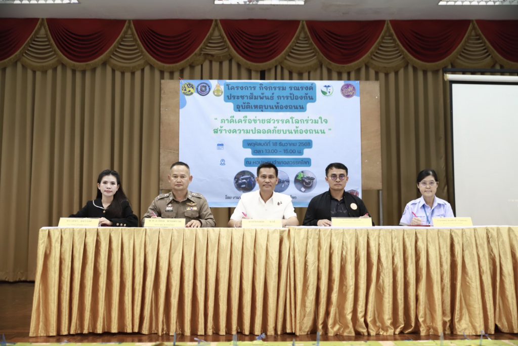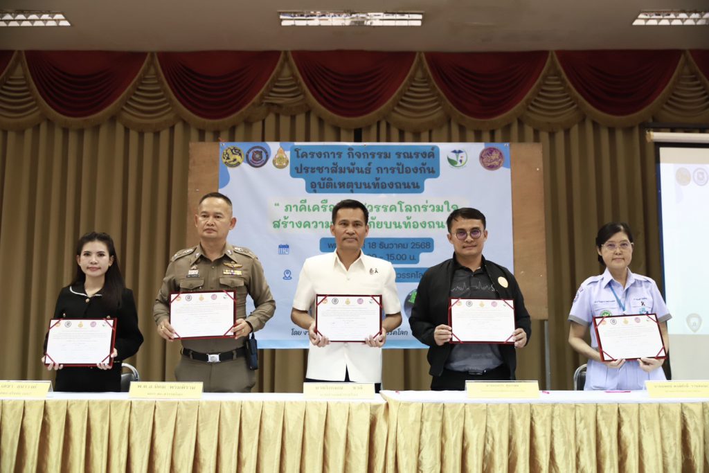 วันที่ 18 ธ.ค.2568 ดร.เดชา ลุนาวงค์ ผอ.สพป.สุโขทัย เขต 2 มอบหมายให้ นางสาวภัทรธิดา ตายอด นักจิตวิทยาโรงเรียนประจำเขตพื้นที่การศึกษา ร่วมประชุมชับเคลื่อนงานจราจร และเตรียมความพร้อม ศูนย์อำนวยการป้องกันและลดอุบัติเหตุทางถนน เพื่อเป็นการป้องกันและลดการเกิดอุบัติเหตุลดการสูญเสียที่เกิดจากอุบัติเหตุ ในช่วงเทศกาลปีใหม่ ๒๕๖๙ และร่วมลงนามทึกตกลงความร่วมมือ(MOU) ระหว่าง สภ.สวรรคโลก กับ โรงพยาบาลสวรรคโลก, สำนักงานเขตพื้นที่การศึกษาประถมศึกษาสุโขทัย เขต 2, สำนักงานขนส่งจังหวัดสุโขทัย สาขาสวรรคโลก และเปิดโครงการกิจกรรมรณรงค์ประชาสัมพันธ์การป้องกันอุบัติเหตุบนท้องถนน “ภาคีเครือข่ายสวรรคโลกร่วมใจ สร้างความปลอดภัยบนท้องถนน โดย นายโกเมณ ชาลี นายอำเภอสวรรคโลก เป็นประธานในพิธี โดยมีผู้นำท้องถิ่น นายกเทศมนตรี ชมรมกำนันผู้ใหญ่บ้านอำเภอสวรรคโลก ชมรม อสม.อำเภอสวรรคโลก ,มูลนิธิกู้ภัยร่วมกตัญญูมูลนิธิบางแก้ว และสื่อสารมวลชน เขาร่วมโครงการ ณ ห้องประชุมอำเภอสวรรคโลก จังหวัดสุโขทัย…(ภัทรธิดา…ภาพ/มณีวรรณ…ข่าว)