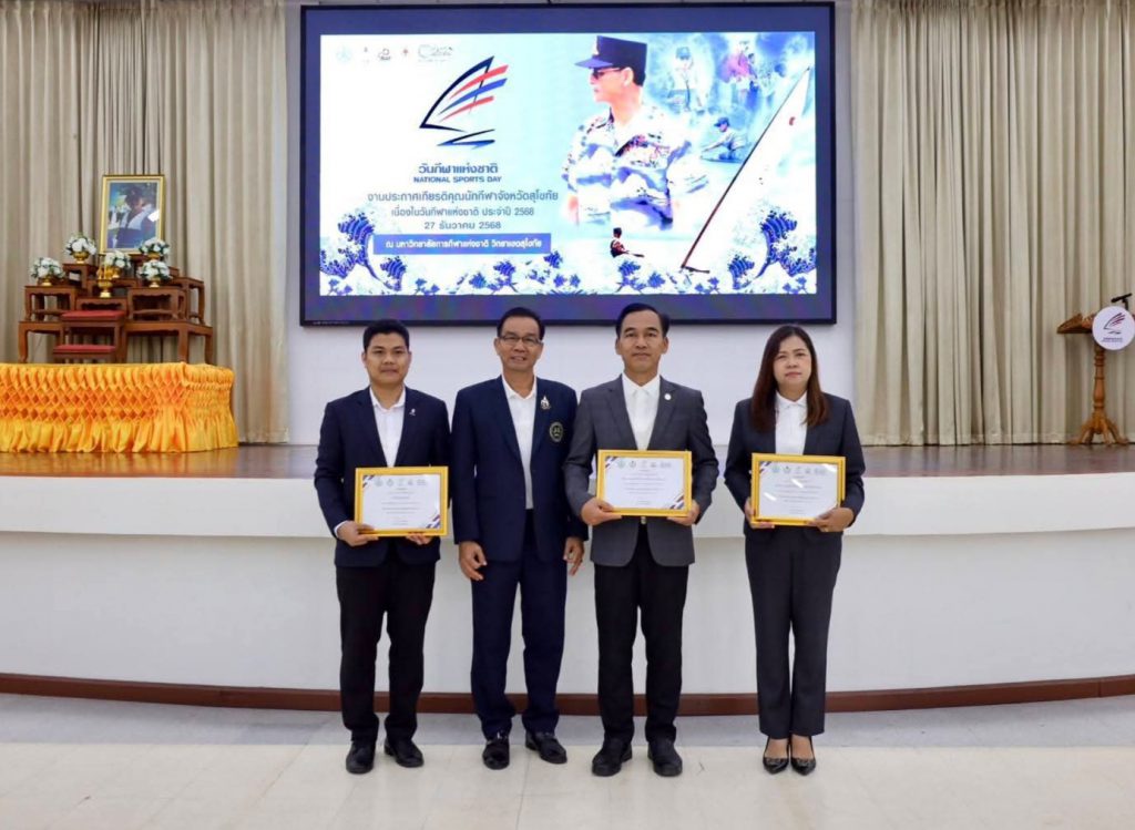 วันที่ 27 ธ.ค.2568 ดร.เดชา ลุนาวงค์ ผอ.สพป.สุโขทัย เขต 2 มอบหมายให้ นางรตนกร ชัยประสิทธิ์ ผู้อำนวยการกลุ่มอำนวยการ เป็นตัวแทนรับเกียรติบัตรประกาศเกียรติคุณบัตรหน่วยงานที่ทำคุณและโยชน์ด้านกีฬาให้กับจังหวัดสุโขทัยด้วยดีตลอดมา เนื่องในวันกีฬาแห่งชาติจังหวัดสุโขทัย ประจำปี พ.ศ.2568 ซึ่งจังหวัดสุโขทัยจัดขึ้นเพื่อน้อมรำลึกถึงวันสำคัญแห่งประวัติศาสตร์ทางการกีฬาของพระบาทสมเด็จพระบรมชนกาธิเบศร มหาภูมิพลอดุลยเดชมหาราช บรมนาถบพิตร ทรงเป็นนักกีฬาทีมชาติไทยเข้าร่วมการแข่งขันกีฬาแหลมทอง ครั้งที่ 4 และทรงชนะเลิศได้รับรางวัลเหรียญทองจากการแข่งขันเรือใบประเภท โอ.เค. โดยผู้ว่าราชการจังหวัดสุโขทัย นายนพฤทธิ์ ศิริโกศล เป็นประธานการมอบ ณ ห้องประชุมทองคูณ หงส์พันธ์ มหาวิทยาลัยการกีฬาแห่งชาติ วิทยาเขตสุโขทัย…(เครือข่ายประชาสัมพันธ์…ภาพ/มณีวรรณ…ข่าว)
