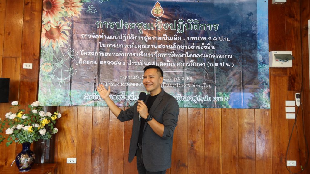 สพป.สุโขทัย เขต 2 โดยกลุ่มนิเทศติดตามและประเมินผลการจัดการศึกษา นำโดย นางสาวพเยาว์ อ่วมภักดี ผู้อำนวยการกลุ่มนิเทศติดตามและประเมินผลการจัดการศึกษา พร้อมคณะศึกษานิเทศก์และผู้มีส่วนเกี่ยวข้อง ร่วมกับคณะกรรมการติดตาม ตรวจสอบ ประเมินผลและนิเทศการศึกษา(ก.ต.ป.น.) ในสังกัด ประชุมเชิงปฏิบัติการการจัดทำแผนปฏิบัติการสู่ความเป็นเลิศ : บทบาท ก.ต.ป.น.ในการยกระดับคุณภาพสถานศึกษาอย่างยั่งยืน ตามโครงการยกระดับการบริหารจัดการศึกษา ระหว่างวันที่ 25-26 ธันวาคม 2568 เพื่อ เป็นการพัฒนาการขับเคลื่อนและการยกระดับคุณภาพสถานศึกษาให้มีความเข้มแข็ง มีคุณภาพ โดยคณะกรรมการ ก.ต.ป.น. ควบคู่กับผู้บริหารสถานศึกษา เพื่อให้แผนที่จัดทำสามารถนำไปใช้ได้จริง เกิดผลเป็นรูปธรรมและนำไปสู่การพัฒนาคุณภาพการศึกษาอย่างยั่งยืน โดย ดร.เดชา ลุนาวงค์ ผอ.สพป.สุโขทัย เขต 2 ได้มอบหมายให้ นายสุภัค พวงขจร รอง ผอ.สพป.สุโขทัย เขต 2 เป็นประธานในพิธีเปิดการประชุมและมอบเกียรติบัตร ณ IMSUK BANMUNG HILL อ.เนินมะปราง จังหวัดพิษณุโลก..(มณีวรรณ…ภาพ/ข่าว)