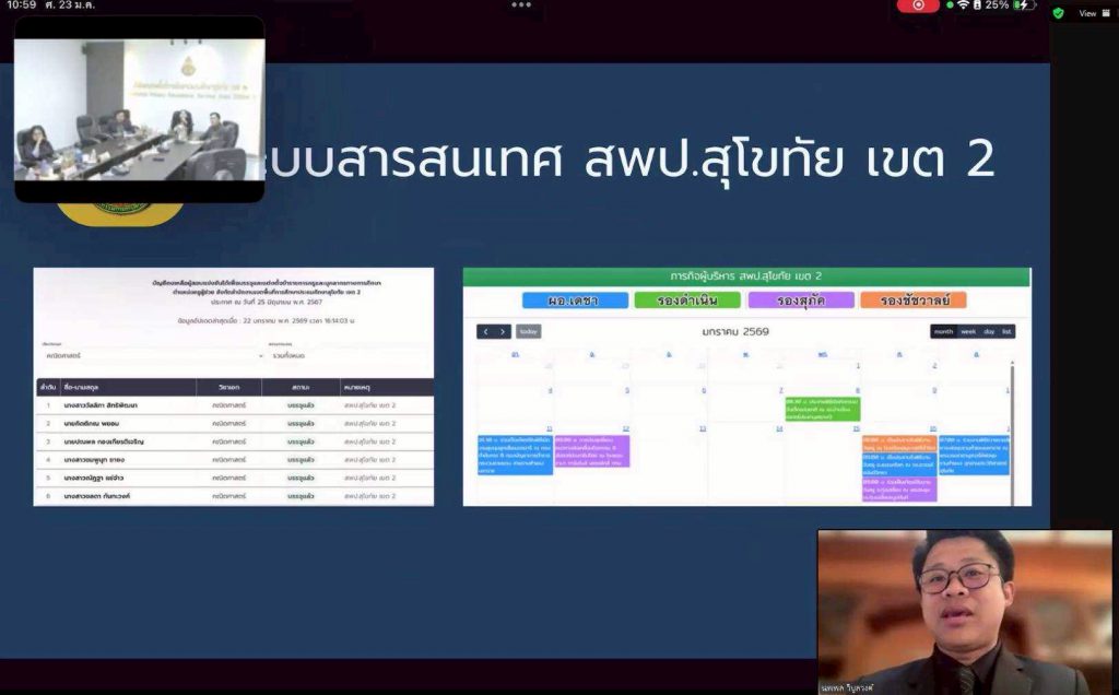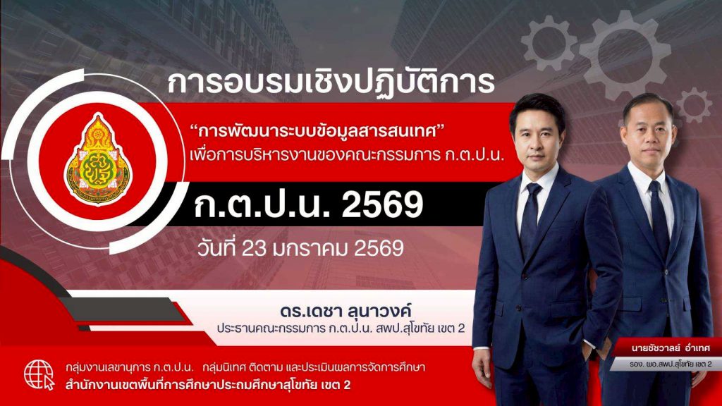 วันที่ 23 ม.ค.2569 กลุ่มงานเลขานุการ ก.ต.ป.น. สพป.สุโขทัย เขต 2 จัดอบรมเชิงปฏิบัติการ พัฒนาระบบข้อมูลสารสนเทศเพื่อสนับสนุนการบริหารงาน ก.ต.ป.น.อย่างมีประสิทธิภาพ ซึ่งได้รับเกียรติจาก ดร.เดชา ลุนาวงค์ ผอ.สพป.สุโขทัย เขต 2 เป็นประธานเปิดการอบรม ซึ่งเป็นการอบรมระบบ On-site โดยผู้เข้าร่วมอบรมเป็นศึกษานิเทศก์และบุคลากรทางการศึกษา จำนวน 20 คน และทาง Online ผ่านระบบ Zoom Meeting สำหรับคณะกรรมการ ก.ต.ป.น.ในสังกัด สำหรับวิทยากรให้ความรู้ในการอบรมได้แก่ นายนพพล วิบูลวงค์ รองผู้อำนวยการโรงเรียนมัธยมพัชรกิติยาภา 2 จังหวัดกำแพงเพชร ณ ห้องประชุมศรีสำโรง สพป.สุโขทัย เขต 2…(มณีวรรณ…ภาพ/ข่าว)