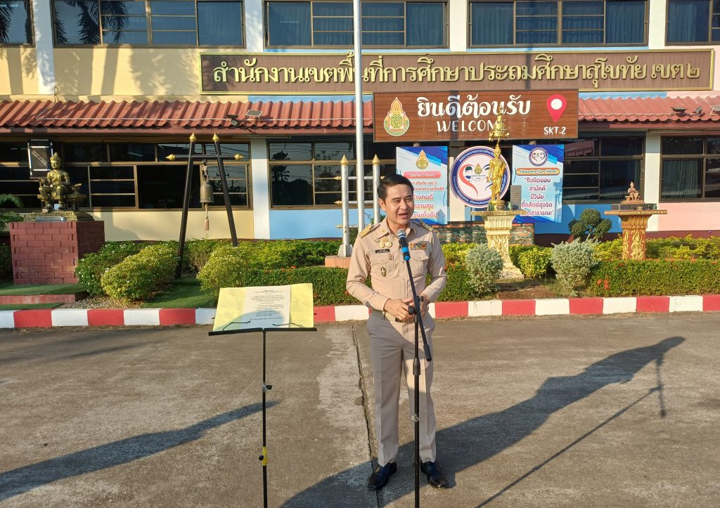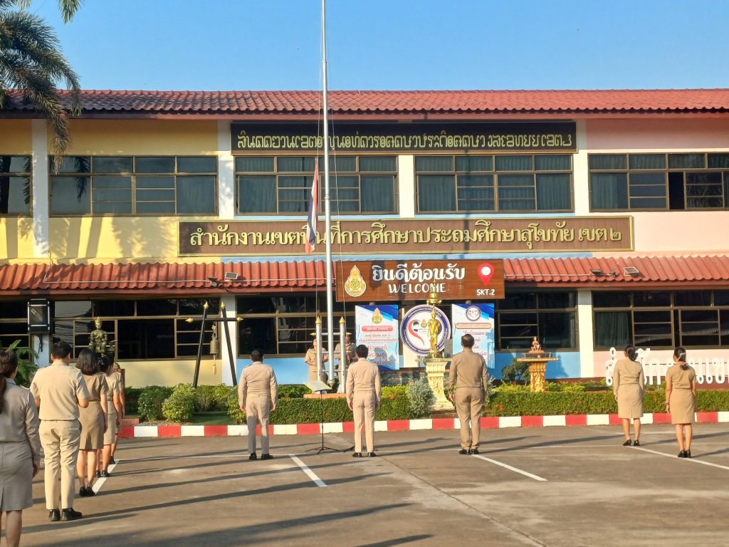 วันที่ 2 กุมภาพันธ์ 2569 ดร.เดชา ลุนาวงค์ ผอ.สพป.สุโขทัย เขต 2 นำคณะ รอง ผอ.สพป.สุโขทัย เขต 2 ,ผู้อำนวยการกลุ่ม พร้อมด้วยเจ้าหน้าที่และบุคลากรในสังกัดเข้าแถวเคารพธงชาติ และกิจกรรมหน้าเสาธงชาติ ประจำเดือนกุมภาพันธ์ 2569 ตามโครงการเขตสุจริต…(มณีวรรณ….ภาพ/ข่าว)