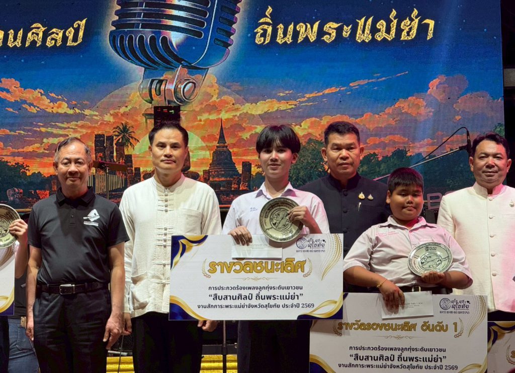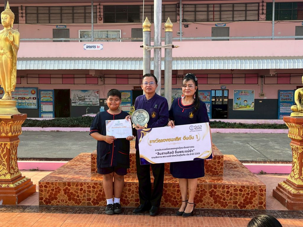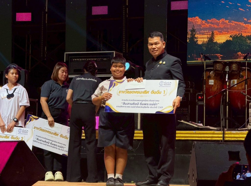 เด็กชายปรัชญาวัต พวงพันธ์ นักเรียนระดับชั้นประถมศึกษาปีที่ 4 โรงเรียนอนุบาลสวรรคโลก(คุ้งวารีวิทยา) สังกัดสำนักงานเขตพื้นที่การศึกษาประถมศึกษา (สพป.) สุโขทัย เขต 2 รับรางวัลรองชนะเลิศ อันดับที่ 1 ในการแข่งขันกิจกรรมประกวดร้องเพลงลูกทุ่งเยาวชน “สืบสานศิลป์ ถิ่นแม่ย่า” ในงานสักการะแม่ย่าจังหวัดสุโขทัย ประจำปี 2569 ณ ศาาลากลางจังหวัดสุโขทัย….(ผอ.สุวิทยา..ภาพ/มณีวรรณ…ข่าว)