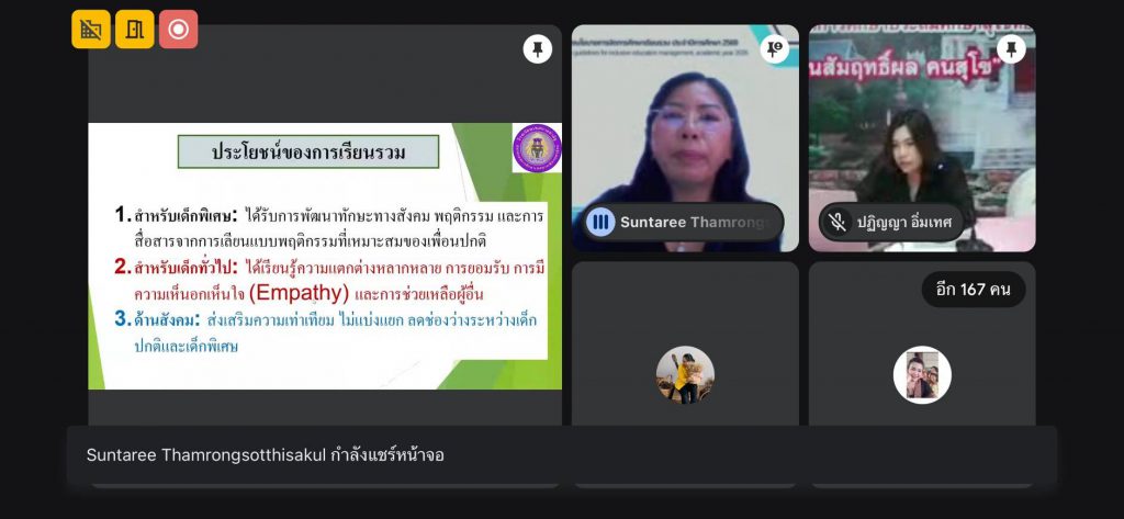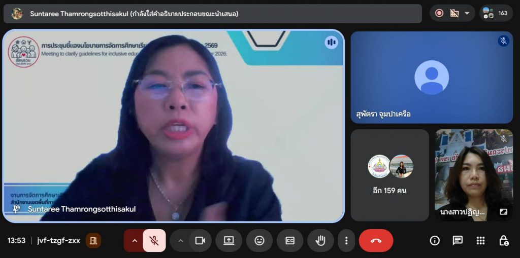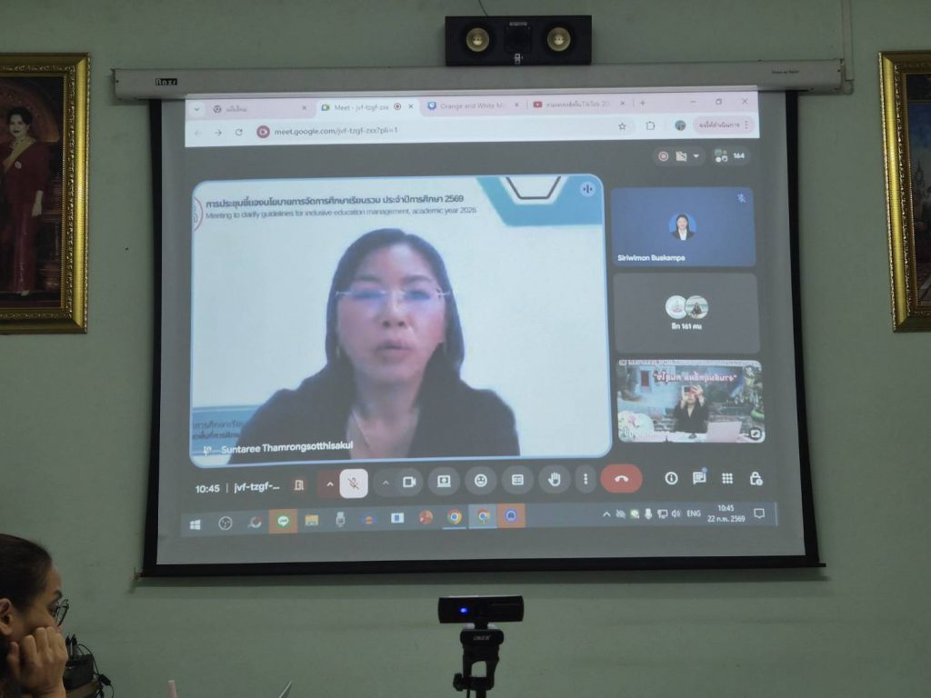 วันที่ 22 ก.พ.2569 กลุ่มนิเทศติดตามและประเมินผลการจัดการศึกษา สพป.สุโขทัย เขต 2 ดำเนินการประชุมชี้แจงแนวทางการจัดการศึกษาเรียนรวม เพื่อเผยแพร่แนวทางปฏิบัติเกี่ยวกับการจัดการศึกษาเรียนรวมสำหรับนักเรียนที่มีความต้องการจำเป็นพิเศษให้แก่สถานศึกษาในสังกัด โดยมี นางสาวปฏิญญา อิ่มเทศ ศึกษานิเทศก์ชำนาญการพิเศษ ผู้รับผิดชอบงานการจัดการศึกษาเรียนรวม กลุ่มงานพัฒนาหลักสูตร เป็นผู้ดำเนินการประชุม โดยได้รับเกียรติจาก นายชัชวาลย์ อ่ำเทศ รอง ผอ.สพป.สุโขทัย เขต 2 เป็นประธานเปิดการประชุม สำหรับวิทยากรให้ความรู้เกี่ยวกับการจัดการศึกษาสำหรับนักเรียนที่มีความต้องการจำเป็นพิเศษในชั้นเรียนรวม ได้รับความอนุเคราะห์จาก นางสุนทรี ธำรงโสตถิสกุล ตำแหน่ง ครู วิทยฐานะ ครูเชี่ยวชาญ โรงเรียนเทศบาลท่าอิฐ จังหวัดอุตรดิตถ์ การประชุมครั้งนี้เป็นการประชุม Online ผ่านระบบ Google Meet ณ ห้องประชุมศรีนคร สพป.สุโขทัย เขต 2…(ศน.ปฏิญญา…ภาพ/มณีวรรณ…ข่าว)