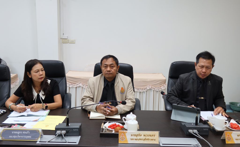 วันที่ 26 ก.พ.2569 ดร.เดชา ลุนาวงค์ ผอ.สพป.สุโขทัย เขต 2 พร้อมด้วยคณะ รอง ผอ.สพป.สุโขทัย เขต 2, ผู้อำนวยการกลุ่ม และผู้แทน ร่วมรับชมการประชุมทางไกลผ่านดาวเทียมทางระบบ Video Conference รายการ พฤหัสเช้า ข่าว สพฐ. ครั้งที่ 8/2569 และเป็นประธานประชุม PLC / ประชุมการพิจารณาจัดสรรงบประมาณ ณ ห้องประชุมศรีสำโรง สพป.สุโขทัย เขต 2…(มณีวรรณ…ภาพ/ข่าว)