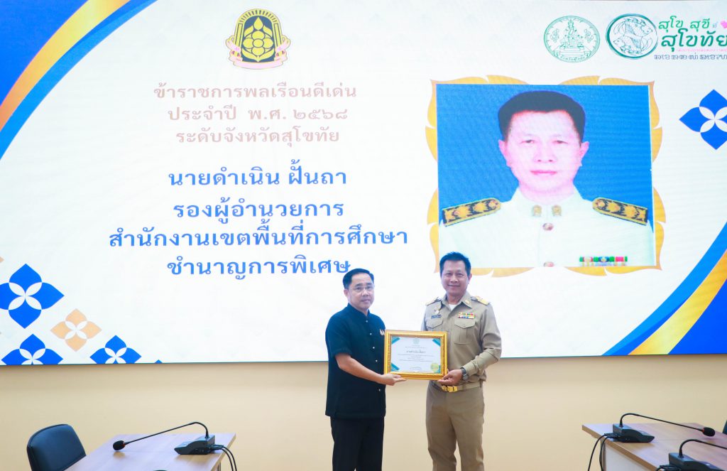 วันที่ 30 มีนาคม 2569 นายดำเนิน ฝั้นถา รอง ผอ.สพป.สุโขทัย เขต 2 รับเกียรติบัตรรางวัลข้าราชการพลเรือนดีเด่น ประจำปี พ.ศ.2568 ระดับจังหวัดสุโขทัย โดย นายนพฤทธิ์ ศิริโกศล ผู้ว่าราชการจังหวัดสุโขทัย ให้เกียรติเป็นผู้มอบ ณ ห้องประชุมศรีสัชนาลัย ศาลากลางจังหวัดสุโขทัย…(สนง.ปชส.สท….ภาพ/มณีวรรณ…ข่าว)