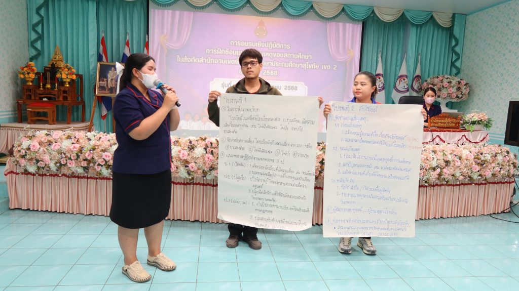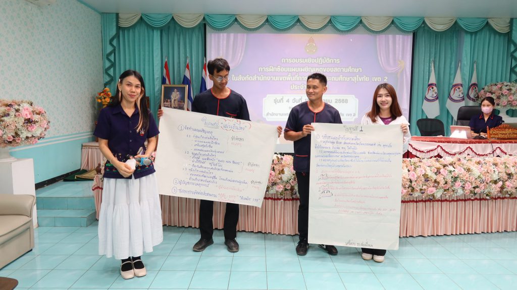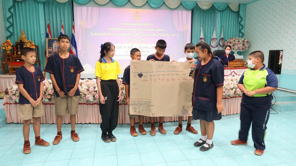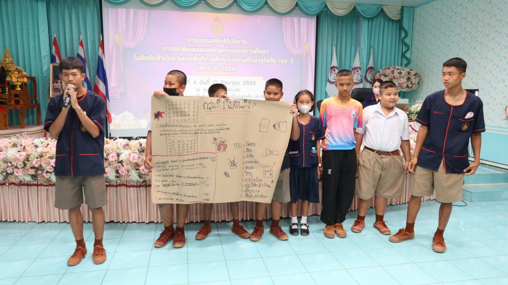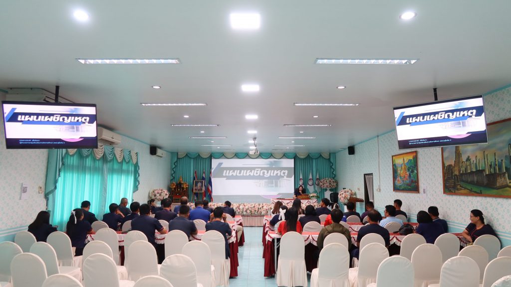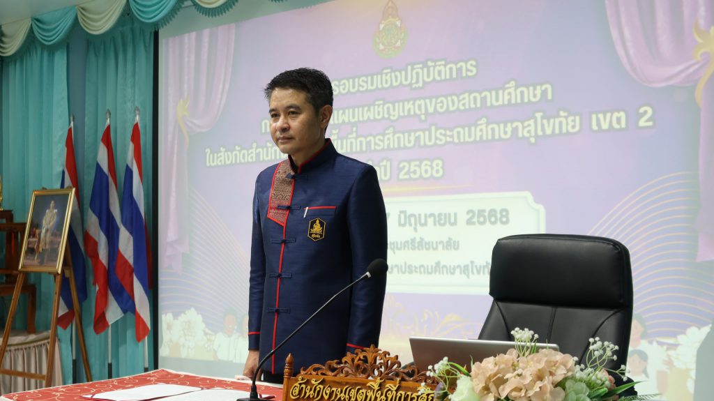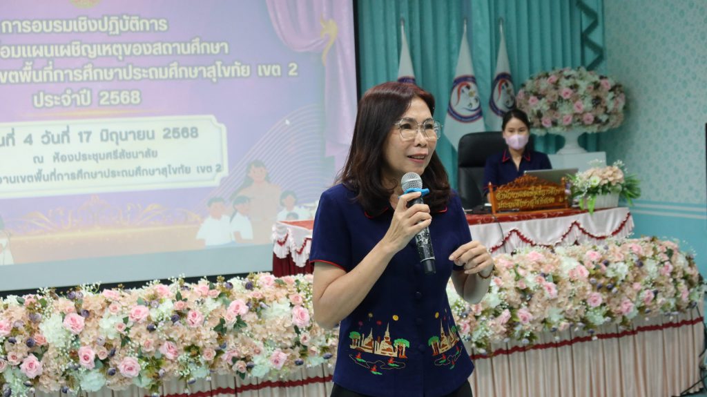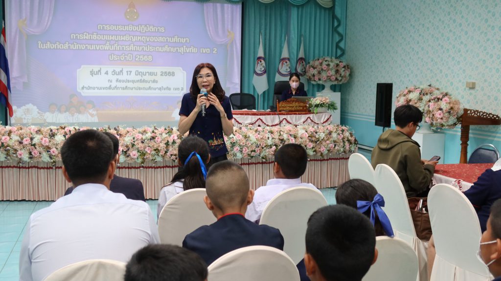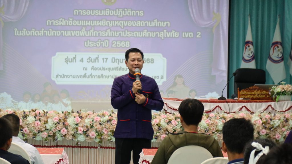 วันที่ 17 มิถุนายน 2568 ศูนย์บริหารความสุขและความปลอดภัย กลุ่มส่งเสริมการจัดการศึกษา สพป.สุโขทัย เขต 2 ดำเนินการอบรมเชิงปฏิบัติการ การฝึกซ้อมแผนเผชิญเหตุของสถานศึกษาในสังกัด รุ่นที่ 4 สำหรับข้าราชการครูและบุคลากรทางการศึกษา และนักเรียนในสังกัดอำเภอทุ่งเสลี่ยม และอำเภอศรีสัชนาลัย เครือข่ายสองฝั่งยม จำนวน 64 คน โดยได้รับความอนุเคราะห์วิทยากรผู้เชี่ยวชาญจากโรงพยาบาลสวรรคโลก ได้แก่ นางสาวดาราวรรณ จันทร์เดช พยาบาลวิชาชีพ และ นางสาววศา แสงชัย นักฉุกเฉินการแพทย์ ให้ความรู้และฝึกปฏิบัติปฐมพยาบาลเบื้องต้น สำหรับการประสบเหตุต่าง ๆ และ นางสาวปราณี เพ็งจันทา ผอ.กลุ่มส่งเสริมการจัดการศึกษา พร้อมด้วย นางสาวจีรนันท์ สืบบุญ นักวิชาการศึกษาปฏิบัติการ และ นางสาวภัทรธิดา ตายอด นักจิตวิทยาโรงเรียนประจำเขตพื้นที่การศึกษา ให้ความรู้และปฏิบัติการในการจัดทำแผนเผชิญเหตุ ความปลอดภัยในสถานศึกษา และวิธีการเอาตัวรอดจากการประสบภัยพิบัติต่าง ๆ โดยได้รับเกียรติจาก ดร.ดชา ลุนาวงค์ ผอ.สพป.สุโขทัย เขต 2 เป็นประธานเปิดการอบรมและบรรยายพิเศษ และ ณ ห้องประชุมศรีสัชนาลัย สพป.สุโขทัย เขต 2