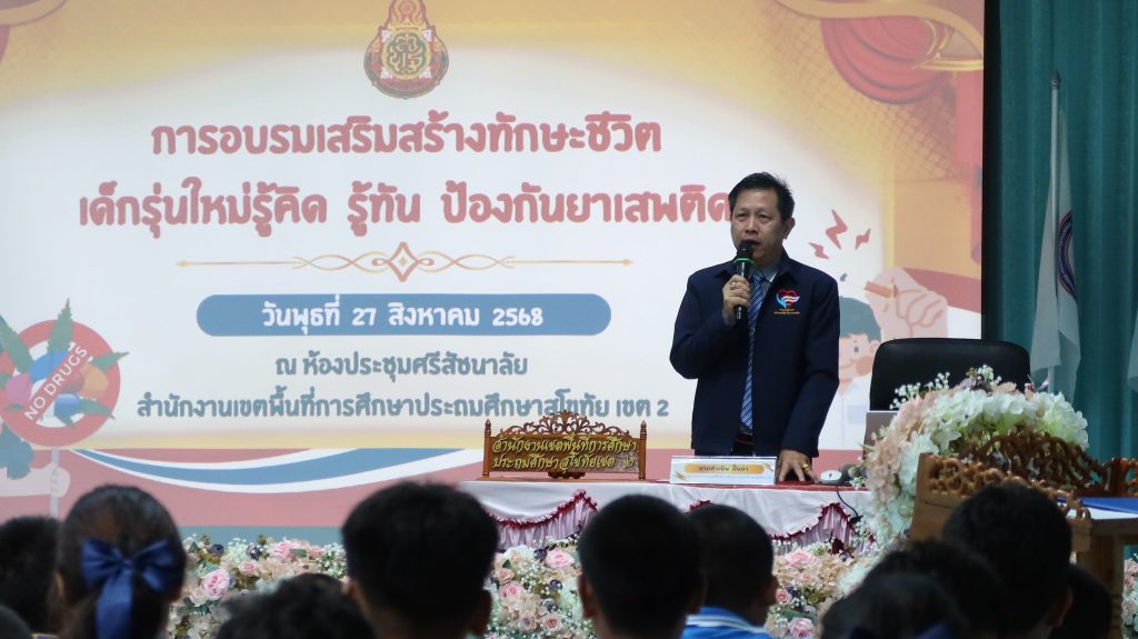 วันที่ 27 ส.ค.2568 กลุ่มส่งเสริมการจัดการศึกษา สพป.สุโขทัย เขต 2 อบรมเสริมสร้างทักษะชีวิต เด็กรุ่นใหม่รู้คิด รู้ทัน ป้องกันยาเสพติด ให้กับตัวแทนนักเรียนโรงเรียนขยายโอกาสทางการศึกษา สังกัด สพป.สุโขทัย เขต 2 โดยได้รับเกียรติจาก นายดำเนิน ฝั้นถา รอง ผอ.สพป.สุโขทัย เขต 2 เป็นประธานเปิดการอบรมและบรรยายพิเศษ สำหรับวิทยากรให้ความรู้ได้รับเกียรติจาก นางอรุณี สิงห์กวาง พยาบาลวิชาชีพชำนาญการ กลุ่มงานจิตเวชและยาเสพติด โรงพยาบาลสวรรคโลก บรรยายให้ความรู้สถานการณ์ปัญหายาเสพติดในประเทศไทยและจังหวัดสุโขทัย โทษและพิษภัย อันตรายใกล้ตัวของยาเสพติด และกิจกรรมยาเสพติดกับเด็กวัยเรียนและวัยรุ่น และกิจกรรมเสริมสร้างทักษะชีวิต ได้แก่กิจกรรม 4 เทคนิค(4R) ปรับเปลี่ยนวิธีคิด พิชิตปัญหา และกิจกรรมการรักและเห็นคุณค่าในตัวเอง โดย นางสาวจีรนันท์ สืบบุญ นักวิชาการศึกษาปฏิบัติการ และ นางสาวภัทรธิดา ตายอด นักจิตวิทยาโรงเรียนประจำเขตพื้นที่การศึกษา สพป.สุโขทัย เขต 2 ณ ห้องปรเชุมศรีสัชนาลัย สพป.สุโขทัย เขต 2…